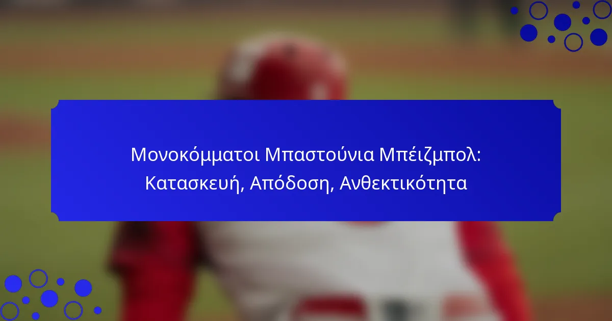 Κατά την επιλογή ενός μπαστούνι του μπέιζμπολ από ένα μόνο κομμάτι, οι βασικοί παράγοντες περιλαμβάνουν την κατασκευή του μπαστούνι, τα χαρακτηριστικά απόδοσης και την ανθεκτικότητα. Η κατανόηση αυτών των στοιχείων βοηθά τους παίκτες να κάνουν ενημερωμένες επιλογές που ενισχύουν το παιχνίδι τους και εξασφαλίζουν μακροχρόνια χρήση του εξοπλισμού τους.